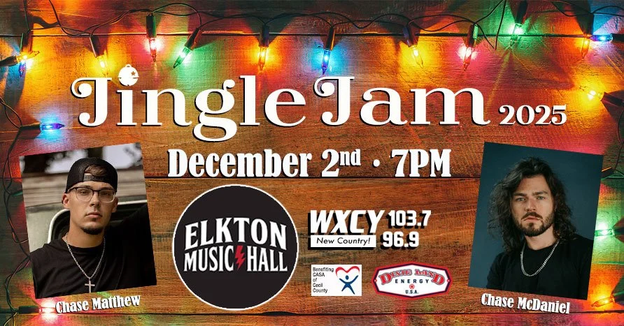 CASA of Cecil County is honored to be the beneficiary of this year’s Jingle Jam, hosted by WXCY 103.7. Join us for an unforgettable evening of music with Chase Matthew, Chase McDaniel and Carly Simmons at the Elkton Music Hall on Tuesday, December 2 at 7:00 PM.